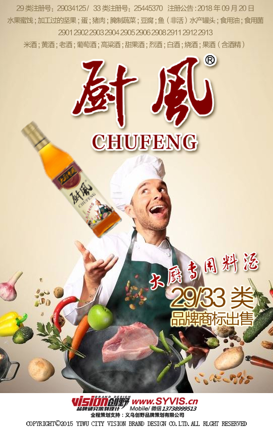 西安29类R商标出售《厨风》鱼制食品;水果罐头;水果干;干蔬菜;牛奶;食用油/义乌商标注册转让